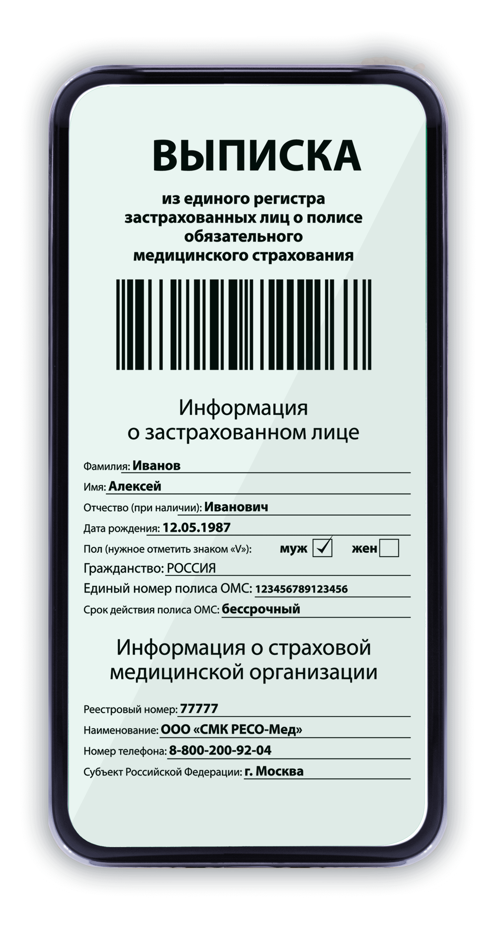 C 1 декабря 2022 года в России действует цифровой полис ОМС. Новая форма документа представляет собой выписку из единого регистра застрахованных лиц. Она содержит персональные данные о застрахованном, номер полиса ОМС, штрих-код полиса, контакты страховой компании (п.32 Приказа Министерства здравоохранения РФ от 28.02.2019 г. №108н "Об утверждении Правил обязательного медицинского страхования").